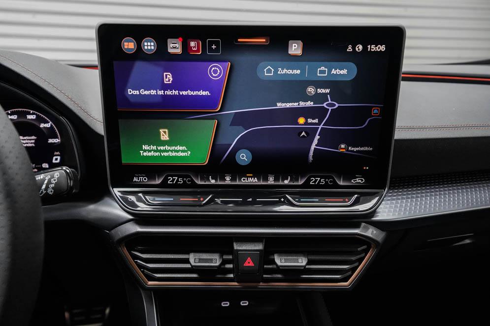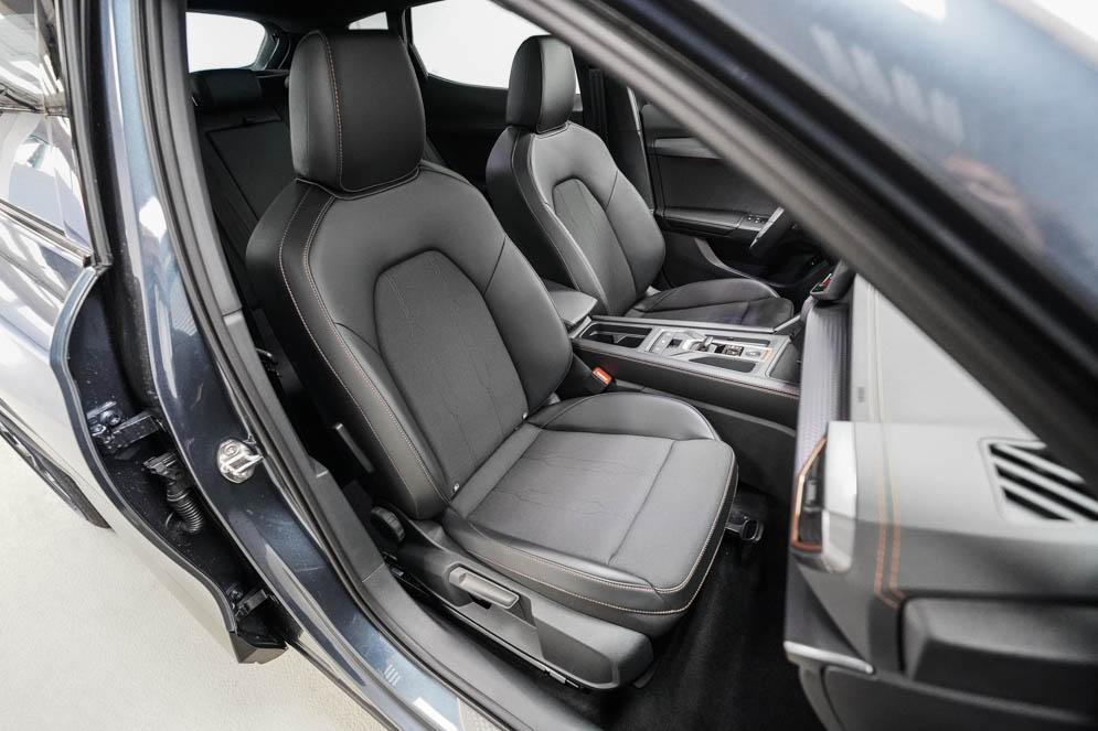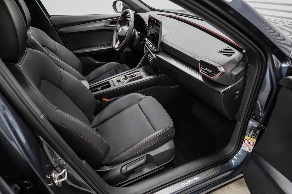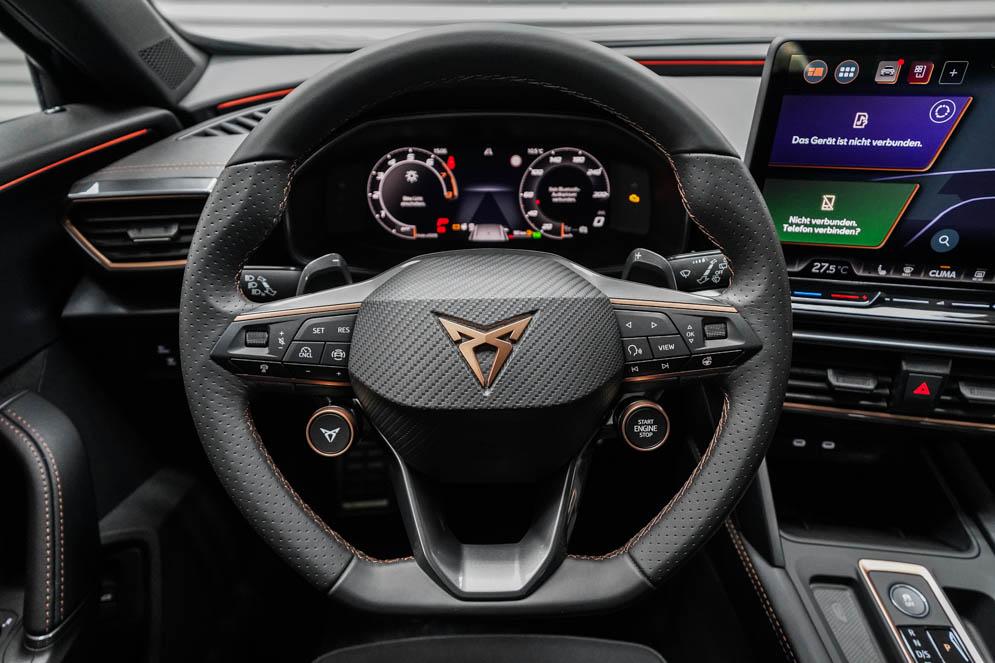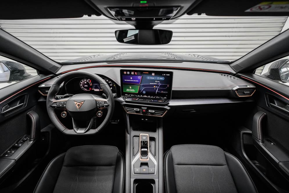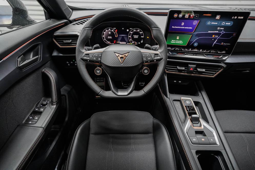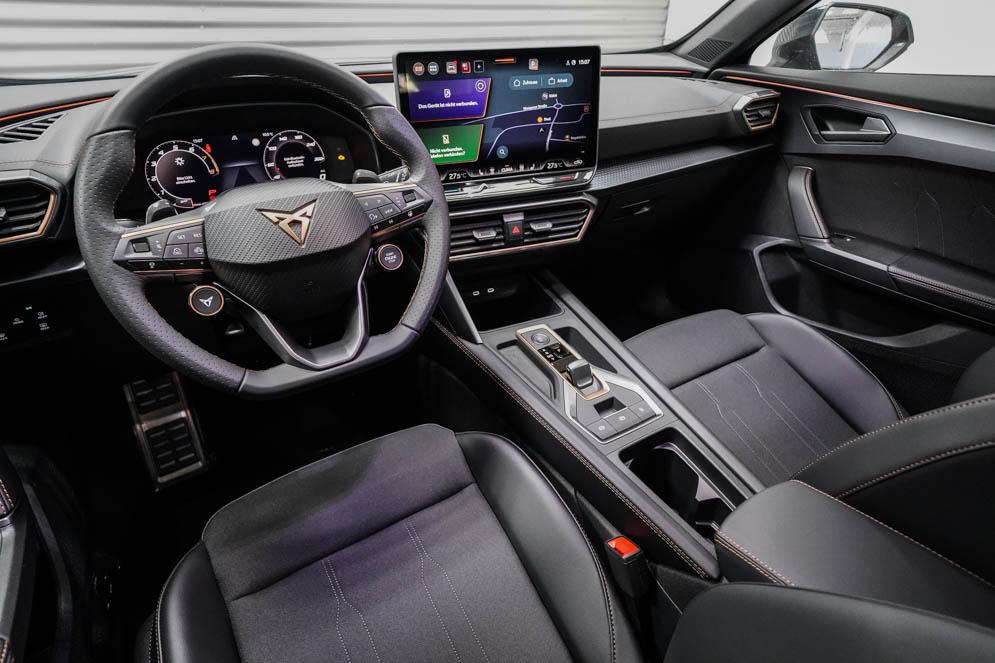 Beifahrersitz höhenverstellbar, Fahrersitz höhenverstellbar, Lederlenkrad, Lendenwirbelstütze vorne, Mittelarmlehne vorne, Sitzbezug Stoff, Gepäckraumabdeckung, geteilt umklappbare Rücksitzlehne, Lenkrad höhenverstellbar, Smart Wraparound Interieur Light, Beheizbares Lenkrad, Multifunktionslenkrad mit Satellitentasten, Isofix, Isofix Beifahrersitz, abgedunkelte Scheiben, 19 Zoll Alufelgen Sandstorm, Dachreling schwarz, ABS, Alarmanlage, Außenspiegel elektrisch, Fensterheber elektrisch, Kopfairbags, Nebelscheinwerfer, Seitenairbags, Servolenkung, Sitzheizung, DCC, ESP, Wegfahrsperre, Zentralverriegelung mit Funk, Außenspiegel beheizbar, Beifahrerairbag, Fahrerairbag, Parkpilot hinten, Parkpilot vorne, Reifendruckkontrolle, Regensensor, Lichtsensor, Digital Cockpit, Tempomat Abstand ACC, Notbremsassistent, Spurhalteassistent plus, Totwinkelassistent, Verkehrszeichenerkennung, Cupra HD Matrix LED Ultra Scheinwerfer, LED-Tagfahrlicht, Rückfahrkamera, Intelligent Park-Assistent, Elektrische Heckklappe inkl. Virtual Pedal, KeylessEntry, StartStopSystem, Innenspiegel automatisch abbl., Müdigkeitswarnsystem, Notrufsystem, Klimaautomatik 3-Zonen, 360-Grad-Kamera, Geschwindigkeitsbegrenzer, Freisprecheinrichtung, Induktionsladestation, Touchscreen, USB, Radio DAB, Bluetooth, Bordcomputer, Navigationssystem, Cupra Full Link, variabler Ladeboden, Exit Assist, Stauassistent, Pre-Crash, erweiterte Herstellergarantie 5 Jahre/100.000km,